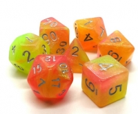 Old School RPG Dice Set: Infused Frosted Firefly - Orange w/ Gold (7)