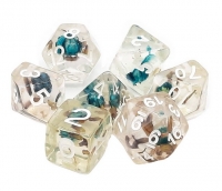 Old School RPG Dice Set: Infused Butterfly - Green w/ Silver (7)