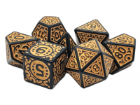Old School 7 Piece DnD RPG Dice Set: Rune Dice - Magical Runes - Gold