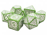 Old School 7 Piece DnD RPG Dice Set: Rune Dice - Magical Runes - White w/ Lime