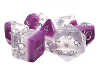 Old School 7 Piece DnD RPG Dice Set: Rune Dice - Magical Runes - White w/ Lavender