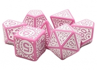 Old School 7 Piece DnD RPG Dice Set: Rune Dice - Magical Runes - White w/ Pink (7)