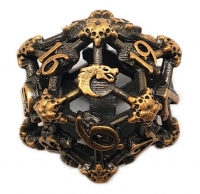 Old School Dice: Hollow Metal D20 Spindown - Skull - Ancient Gold
