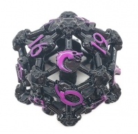 Old School Dice: Hollow Metal D20 Spindown - Skull - Black Nickel w/ Purple