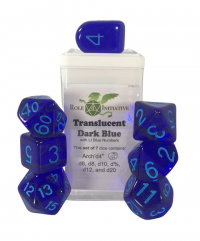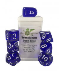Polyhedral Dice Set: Translucent Dark Blue/White dice w/ Arch'd4 & Balance'd20 (7)