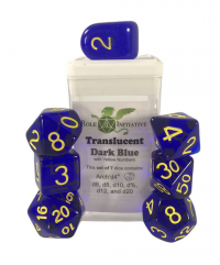 Polyhedral Dice Set: Translucent Dark Blue/Light Blue dice w/ Arch'd4 & Balance'd20 (15)