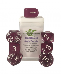 Polyhedral Dice Set: Translucent Dark Purple/White dice w/ Arch'd4 & Balance'd20 (15)