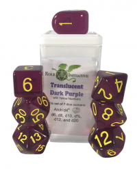 Polyhedral Dice Set: Translucent Dark Purple/Yellow dice w/ Arch'd4 & Balance'd20 (7)