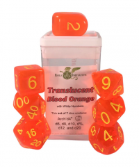 Polyhedral Dice Set: Translucent Blood Orange/White dice w/ Arch'd4 & Balance'd20 (7)