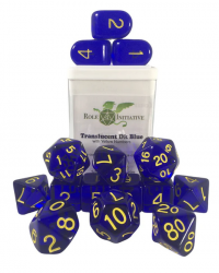 Polyhedral Dice Set: Translucent Dark Blue/Yellow dice w/ Arch'd4 & Balance'd20 (15)
