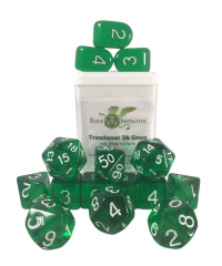 Polyhedral Dice Set: Translucent Dark Green/White dice w/ Arch'd4 & Balance'd20 (15)