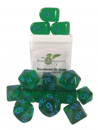 Polyhedral Dice Set: Translucent Dark Green/Light Blue dice w/ Arch'd4 & Balance'd20 (15)