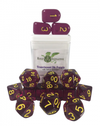 Polyhedral Dice Set: Translucent Dark Purple/Yellow dice w/ Arch'd4 & Balance'd20 (15)