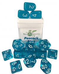 Polyhedral Dice Set: Translucent Peacock Blue dice w/ Arch'd4 & Balance'd20 (15)