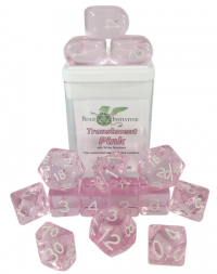 Polyhedral Dice Set: Translucent Pink/White dice w/ Arch'd4 & Balance'd20 (15)