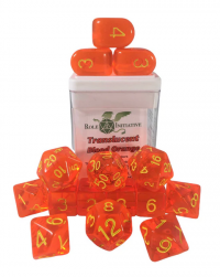 Polyhedral Dice Set: Translucent Blood Orange/Yellow dice w/ Arch'd4 & Balance'd20 (15)