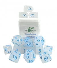 Polyhedral Dice Set: Translucent White/Blue dice w/ Arch'd4 & Balance'd20 (15)
