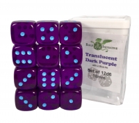 Translucent Dark Purple w/ Lt Blue Ink - Set of 12d6 pips 18mm Dice