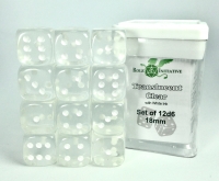 Translucent Clear w/ White - Set of 12d6 pips 18mm Dice