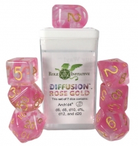 Polyhedral Dice Set: Diffusion Rose Gold dice w/ Arch'd4 & Balance'd20 (15)