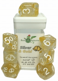 Polyhedral Dice Set: Diffusion Silver & Gold dice w/ Arch'd4 & Balance'd20 (7)