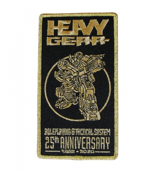In celebration of the 25th Anniversary of the release of the Heavy Gear Roleplaying & Tactical System Rulebook back at Gen Con in August 1995 we made a special patch. The HG25th Patch is 5.85" x 3.15" with an Iron-on backing, and this version uses Gold Metallic Thread on Black twill with merrowed edging.