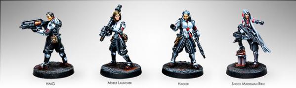 This box includes four miniatures: a Keisotsu with Missile Launcher, a Keisotsu with HMG, a Keisotsu Hacker and one Kempeitai with Shock Marksman Rifle and Multispectral Visor Level 2. These troops are the backbone of the Japanese armed forces and the crux of their operational doctrine.