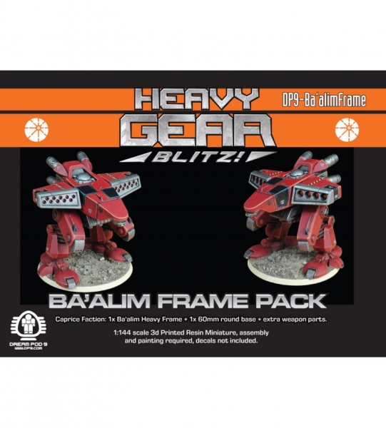 The new Ba'alim Heavy Frame for the Caprice Faction includes 1x Ba'alim, 60mm round base, plus Heavy Artillery Rockets and Heavy Air Burst Missiles weapon parts.