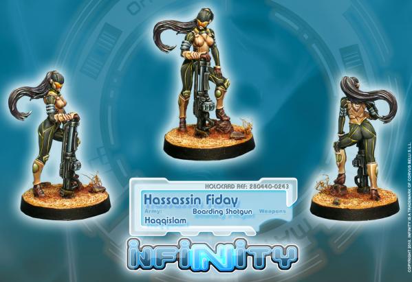 The Fidays are the destroying angels of the Hassassin Society. This elite assassins are superb impersonators capable to adopt the appareance of the enemy o infiltrate behind his lines and strike with maximum lethality. And the best short range weapon to do that is the versatile Boarding Shotgun. Don�t even try to surrender, because this gorgeous Hassassin will not have mercy with you!