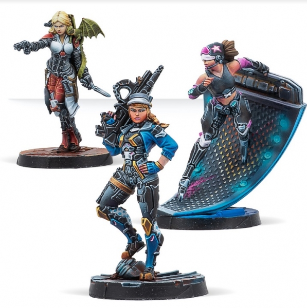 This box includes 3 miniatures: Sonya Lacroix with MULTI Rifle, Lupe Balboa with Combi Rifle, and one Roller Girl. With this box, you can not only expand your collection of Infinity miniatures, but you will get new options for your army—giving them personality with these two heroes—and also a neutral model to play missions and scenarios.