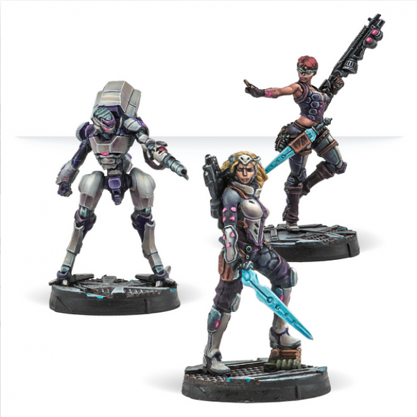 This box includes 3 miniatures: one Scylla Hacker, one DevaBot with Heavy Flamethrower, and one Nesaie Alkê with Spitfire. The perfect support for your Steel Phalanx Fireteams, adding extra firepower to your ALEPH force from Operation: Blackwind.