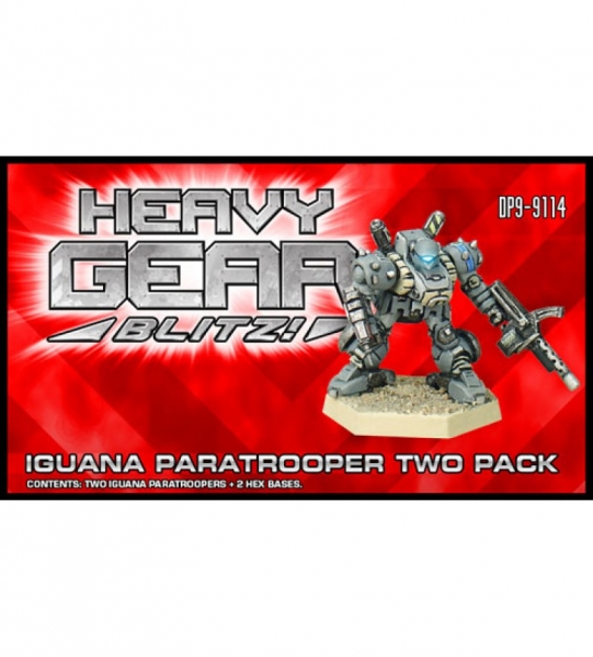 2 Iguana Paratroopers packaged in a large blister. 31mm tall mounted on hex base 1/144 scale.