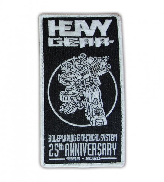 In celebration of the 25th Anniversary of the release of the Heavy Gear Roleplaying & Tactical System Rulebook back at Gen Con in August 1995 we made a special patch. The HG25th Patch is 5.85" x 3.15" with an Iron-on backing, and this version uses Glow in the Dark Thread on Black twill with merrowed edging.