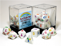 Chessex: Polyhedral Opaque White w/ Rainbow 7-die set in Plastic box