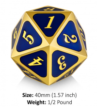 Dice Habit: 40mm Metal D20 Spindown Counter - Blue & Gold (1)