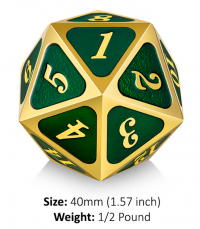 Dice Habit: 40mm Metal D20 Spindown Counter - Green & Gold (1)