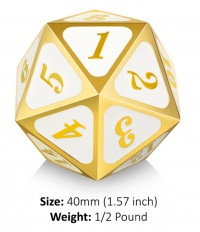Dice Habit: 40mm Metal D20 Spindown Counter - White & Gold (1)