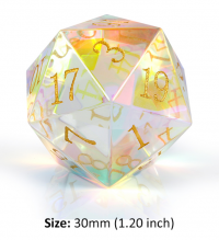 Dice Habit: 30mm Jumbo D20 Dice - Rainbow K9 Glass (1)