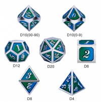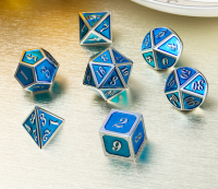 Dice Habit: Metal & Enamel Dice Set - Cyan & Silver (7pcs)