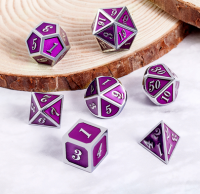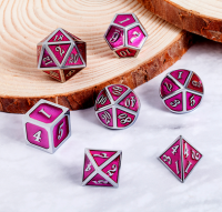 Dice Habit: Metal & Enamel Dice Set - Magenta & Silver (7pcs)