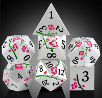 Dice Habit: Metal & Enamel Dice Set - (Sakura) Silver & Pink (7pcs)