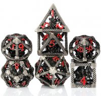 Dice Habit: Hollow Dice Set - (Dragon Cage) Gunmetal & Red (7pcs)