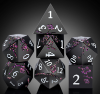 Dice Habit: Metal & Enamel Dice Set - (Sakura) Black & Magenta (7pcs)