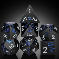 Dice Habit: Metal & Enamel Dice Set - (Sakura) Black & Blue (7pcs)